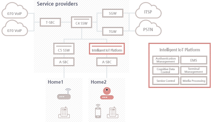 The Intelligent AP offered by the IPAGEON Inc., capable of performing free voice/video communication, video image monitoring, intrusion detection, day/night care service, emergency call service and others with the camera, temperature sensor, illumination sensor and emergency call button as built-in the AP device by employing the mobile VoIP technology and advanced IoT/M2M technology, which executes such important task as an in-home network hub, is a next generation smart AP products.